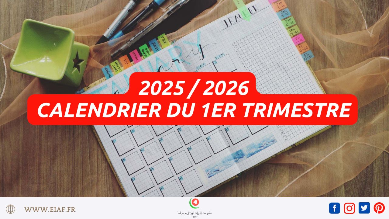 L’École Internationale Algérienne en France met à la disposition des élèves, des parents et de l’ensemble de la communauté éducative le calendrier du 1er trimestre de l’année scolaire 2025-2026.