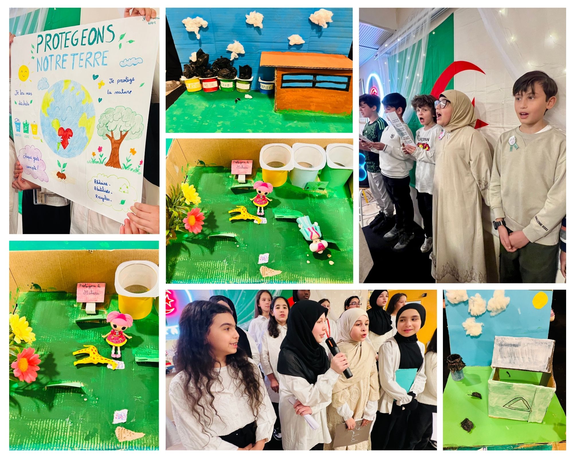 • Présentation du projet « Protégeons notre planète » par les élèves de 5AP1 et 5AP2, sous la supervision de Mme Deradji, mettant en avant la sensibilisation à la protection de l’environnement.
